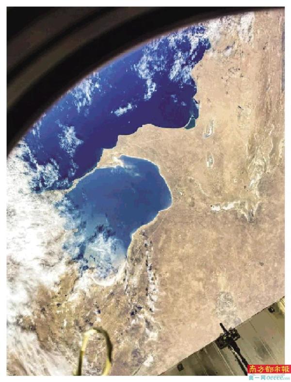 里海静静地映出碧海蓝天。 航天员 刘伯明 摄
