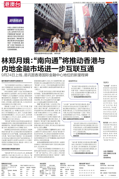 林郑月娥:“南向通”将推动香港与内地金融市场进一步互联互通