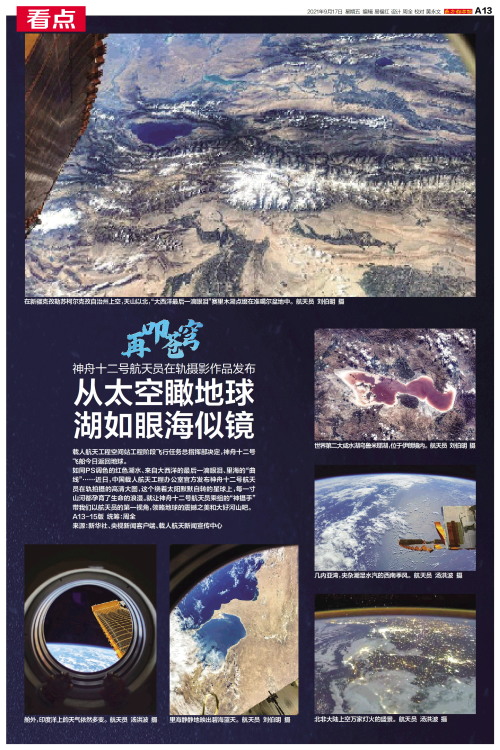 载人航天工程空间站工程阶段飞行任务总指挥部决定,神舟十二号飞船今日返回地球。如同PS调色的红色湖水、来自大西洋的最后一滴眼泪、里海的“曲线”……近日,中国载人航天工程办公室官方发布神舟十二号航天员