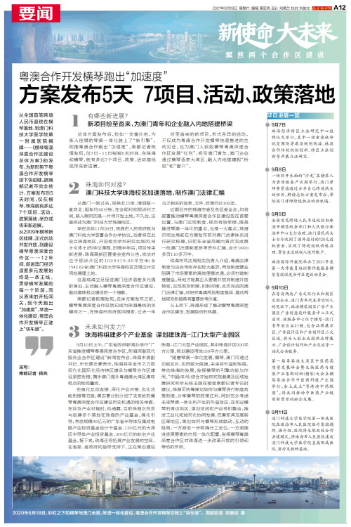 从全国首笔跨境人民币退税在横琴落地,到澳门科技大学医学院第一附属医院揭牌……《横琴粤澳深度合作区建设总体方案》的发布,为新形势下粤澳合作开发横琴按下快进键。据南都记者不完全统计,方案发布后5天时间