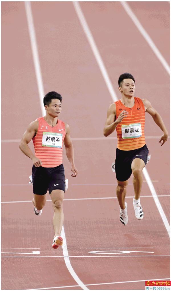 昨天这场半决赛是苏炳添和谢震业本赛季第一次在百米赛道上正面较量。
