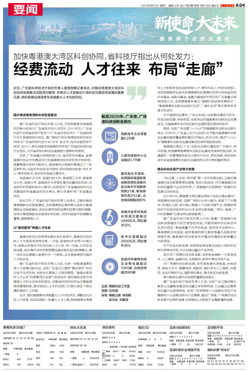 近日,广东省科学技术厅相关负责人接受南都记者采访,对推动粤港澳大湾区科创协同发展重点话题进行解答,并表示人才是推动三地科创元素协同发展的重要元素,将积极推动港澳青年承接重大人才科技项目。稳步推进粤