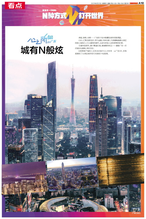 卓越、惊艳、光鲜……广东的个性半数藏在城市的腔调里。 CBD,汇聚总部经济、现代金融、科研创新,代表着粤港澳大湾区的核心竞争力。灯火通明的楼宇,正成为年轻人实现梦想的阶梯。 交通网络密布,港口