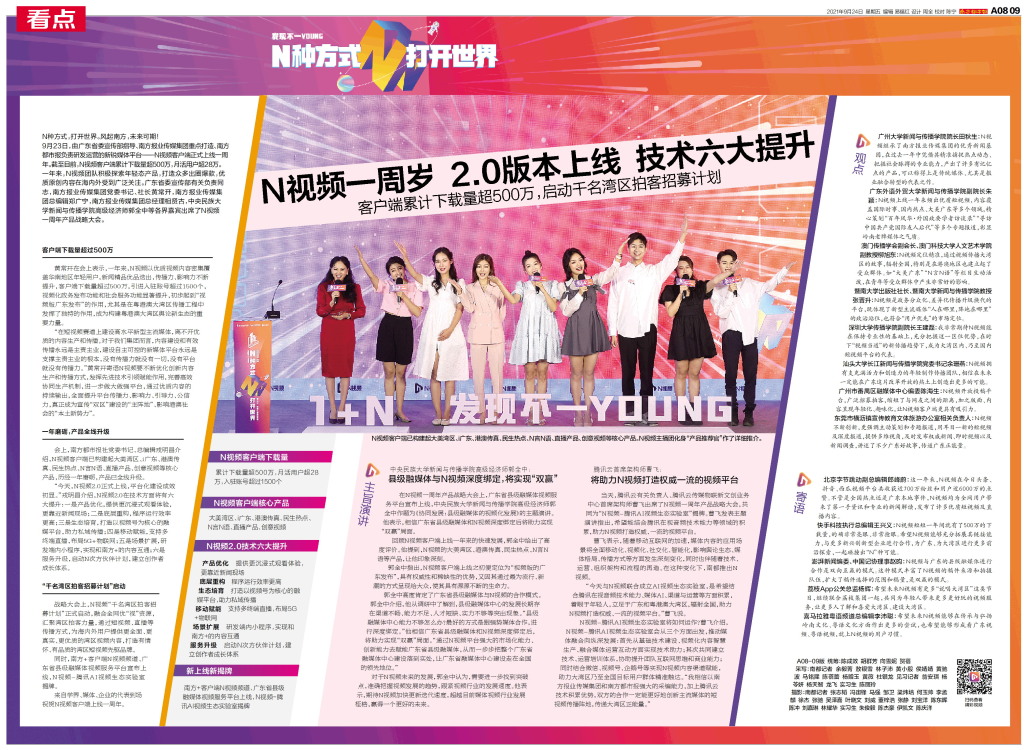 N种方式,打开世界。风起南方,未来可期! 9月23日,由广东省委宣传部指导、南方报业传媒集团重点打造、南方都市报负责研发运营的新锐媒体平台——N视频客户端正式上线一周年。截至目前,N视频客户端累