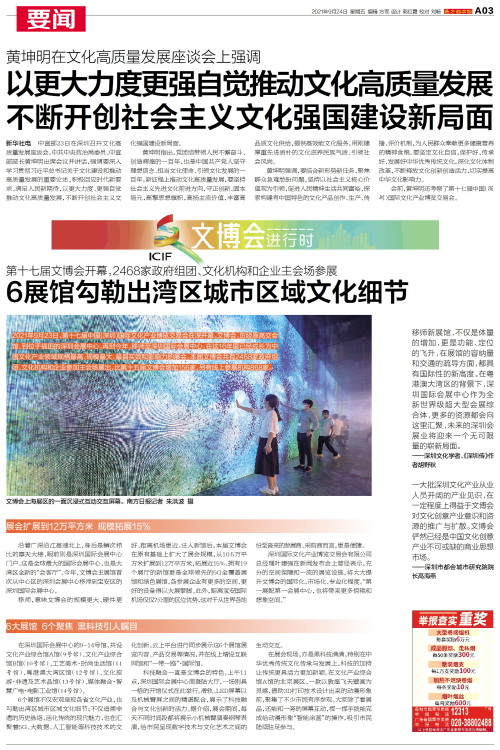 2021年9月23日,第十七届中国(深圳)国际文化产业博览交易会在深开幕。文博会,历经原高交会馆、到位于福田的深圳会展中心,再到今年,移师至深圳国际会展中心,在这16年里已经成长为中国文化产业领域