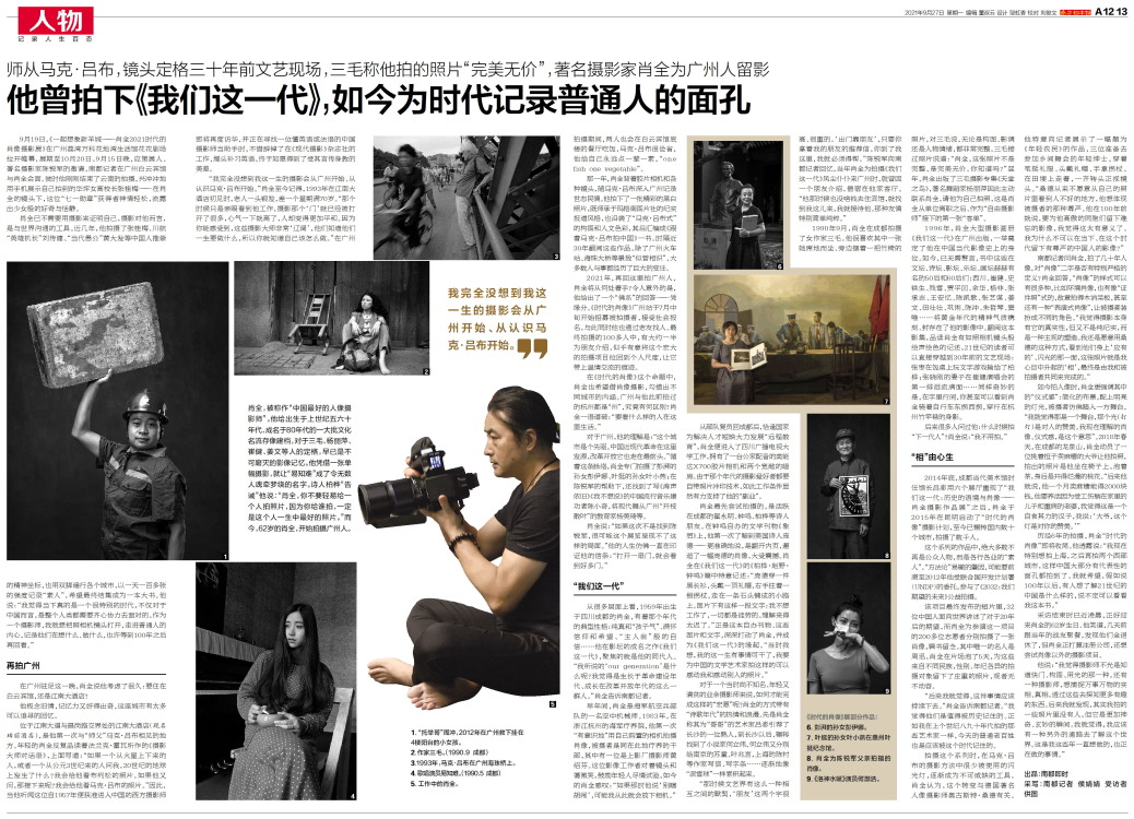9月19日,《一起想象新羊城——肖全2021时代的肖像摄影展》在广州荔湾万科花地湾生活馆花花剧场拉开帷幕,展期至10月20日。9月15日晚,应策展人、著名摄影家陈锐军的邀请,南都记者在广州白云宾馆与肖全会面。彼时他刚刚结束了云南的拍摄,兴冲冲地用手机展示自己拍到的华坪女高校长张桂梅——在肖全的镜头下,这位“七一勋章”获得者神情轻松,流露出少女般的好奇与恬静。