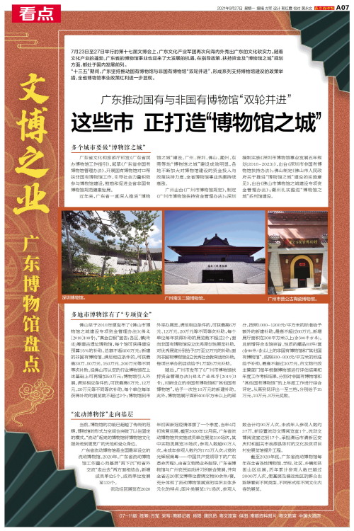 7月23日至27日举行的第十七届文博会上,广东文化产业军团再次向海内外秀出广东的文化软实力。随着文化产业的蓬勃,广东省的博物馆事业也迎来了大发展的机遇,在指导政策、扶持资金及“博物馆之城”规划方面