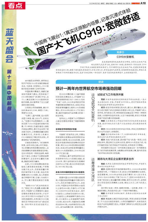 由中国自主研制的、具有独立知识产权的C919在本届航展备受关注。与波音、空客相比,C919客舱内到底长啥样?又有何优势? 中国航展开幕首日,南都记者来到中国商飞展台,现场体验了C919移动数字飞