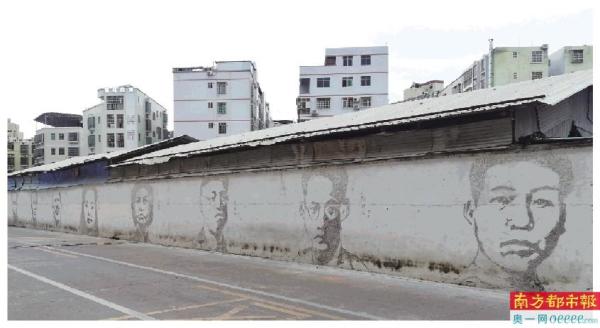 近日,在广东河源一所小学的围墙上,出现了一幅长100米、高约2.4米的墙绘作品。墙绘的主角是李大钊、闻一多、刘胡兰等14位革命先烈。巨幅画像上革命先烈们眼神坚定,栩栩如生。许多网友看到不禁感叹“高手在民间”。
