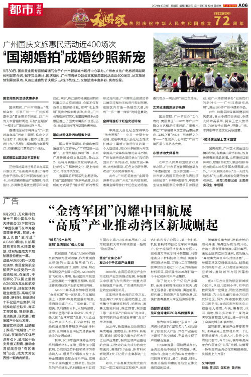 专题 9月28日,万众期待的第十三届中国航空航天博览会(以下简称为“中国航展”)在珠海金湾隆重开幕。其间,土生土长的“金湾造”AG600展翅,在航展馆前将9吨水精准投放,壮观