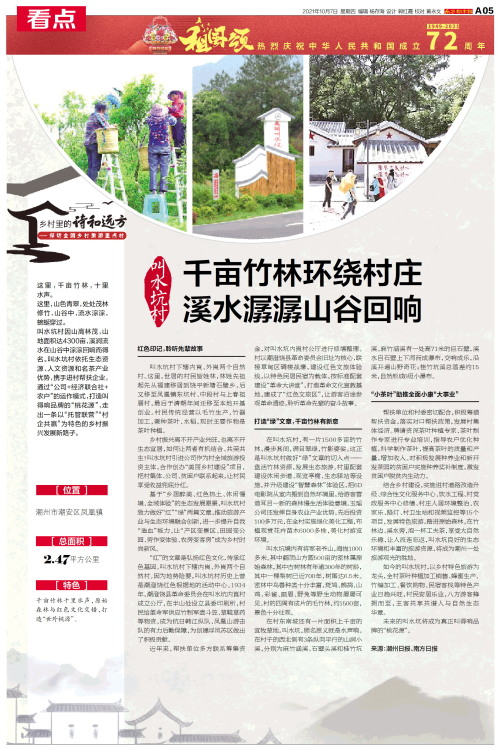 千亩竹林十里水声,原始森林与红色文化交错,打造“世外桃源”。