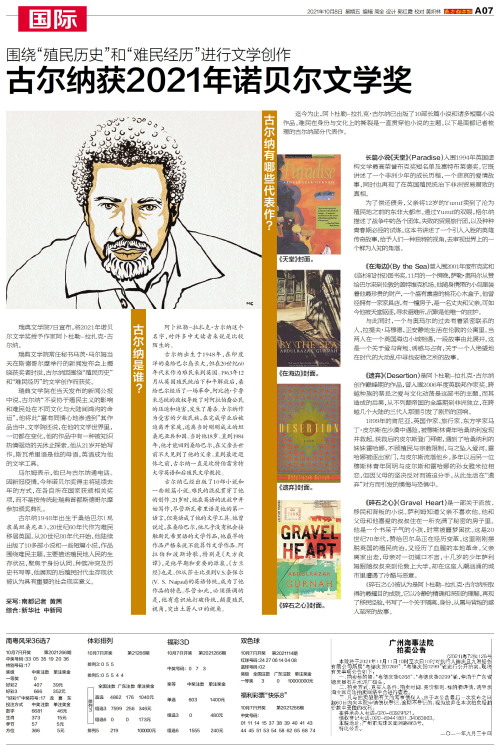 瑞典文学院7日宣布,将2021年诺贝尔文学奖授予作家阿卜杜勒-拉扎克·古尔纳。