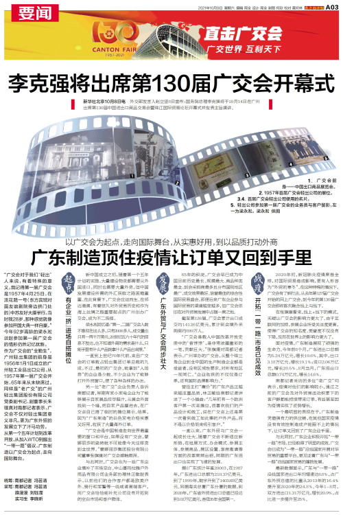 新华社北京10月8日电 外交部发言人赵立坚8日宣布:国务院总理李克强将于10月14日在广州出席第130届中国进出口商品交易会暨珠江国际贸易论坛开幕式并发表主旨演讲。