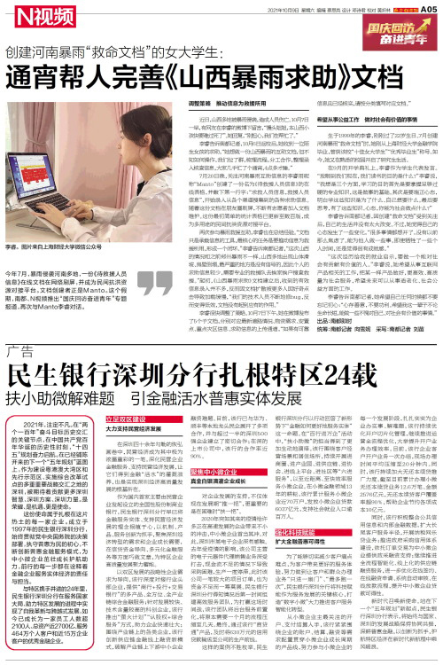 今年7月,暴雨侵袭河南多地,一份《待救援人员信息》在线文档在网络刷屏,并成为民间抗洪资源对接平台。文档创建者正是Manto。这个假期,南都、N视频推出“国庆回访奋进青年”专题报道,再次与Manto
