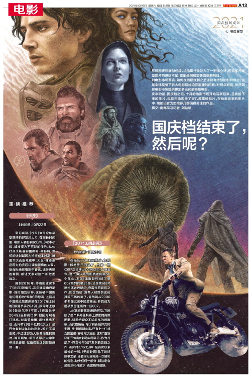2021国庆档炼成记之 节后展望 尽管国庆档屡创佳绩,给电影行业注入了一剂强心针,但是多元类型影片的供给不足,依旧是院线需要面临的挑战。 对电影市场而言,如何在档期红利之后还能有持续的影片供应