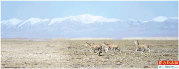 在青藏高原,每年5月开始,怀孕的母藏羚羊会陆续跋涉数百公里乃至上千公里,到产仔地分娩,到了7月,它们带着新生的羔羊返回栖息地。成群迁徙的藏羚羊,在高原的旷野奔跑,形成全球最壮观的有蹄类动物大迁徙景象之一。
