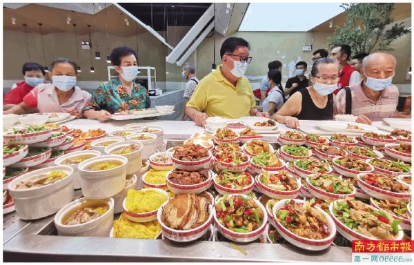 9月9日,深圳福田街道近50名老人体验开在CBD的长者饭堂,丰富的菜品兼具高性价比让他们大呼暖心。 南都记者 张馨怡 摄