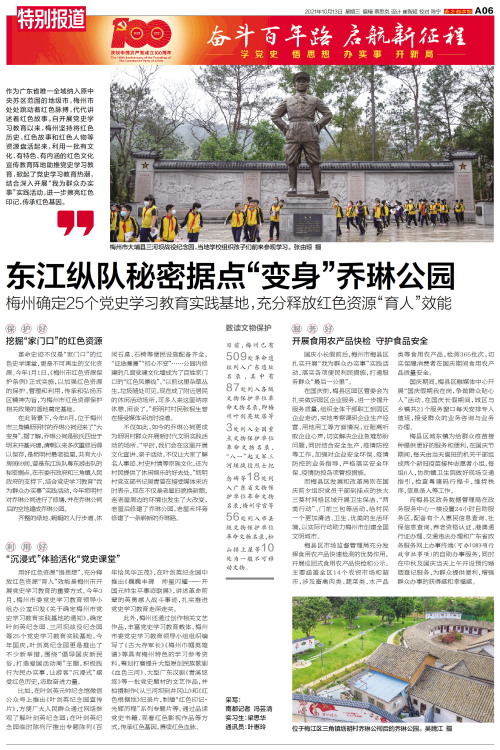 作为广东省唯一全域纳入原中央苏区范围的地级市,梅州市处处跳动着红色脉搏,代代讲述着红色故事。自开展党史学习教育以来,梅州坚持将红色历史、红色故事和红色人物等资源盘活起来,利用一批有文化、有特色、有
