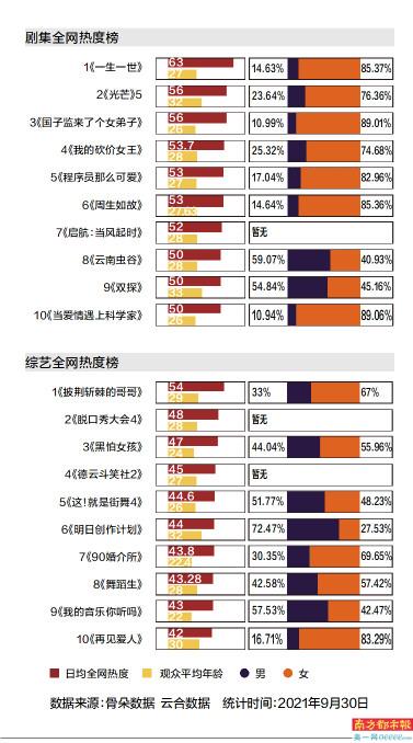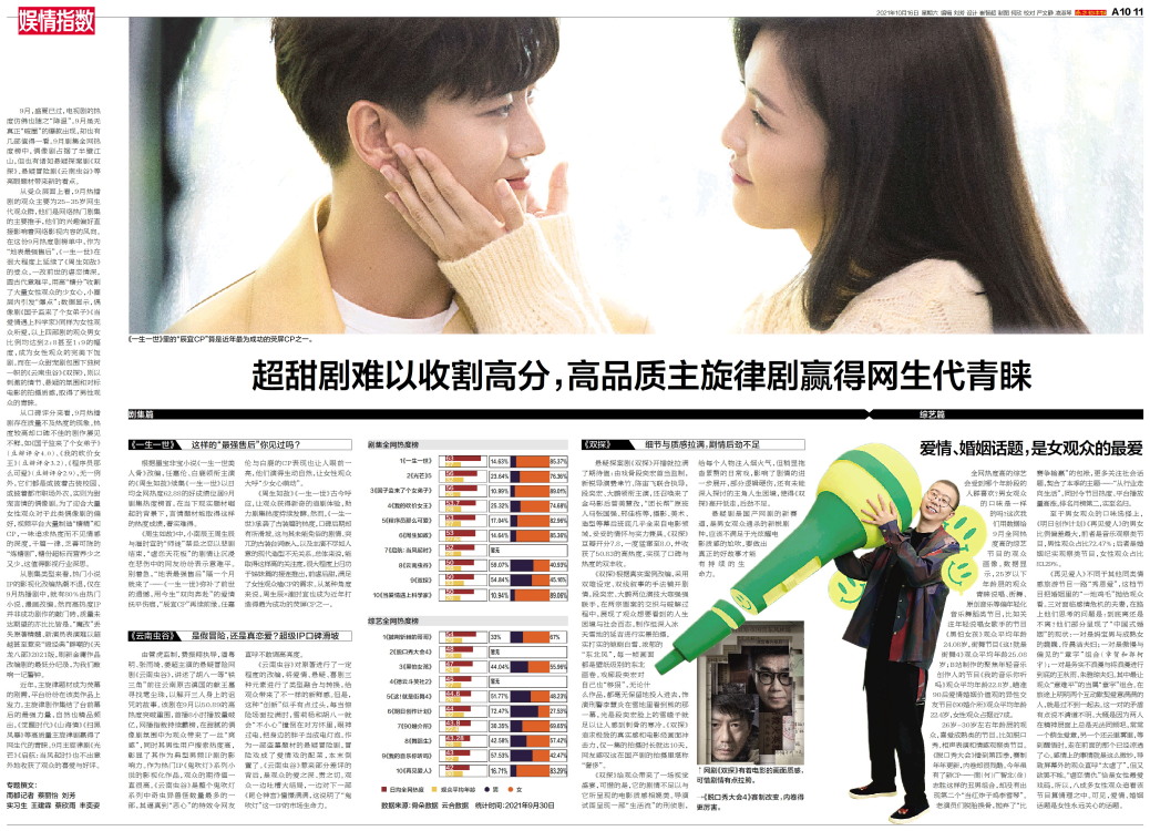 从受众层面上看,9月热播剧的观众主要为25-35岁网生代观众群,他们是网络热门剧集的主要推手,他们的兴趣偏好直接影响着网络影视内容的风向。在这份9月热度剧榜单中,作为“地表最强售后”,《一生一世》在很大程度上延续了《周生如故》的受众,一改前世的虐恋情深,圆古代意难平,用高“糖分”收割了大量女性观众的少女心,小圈层内引发“爆点”;数据显示,偶像剧《国子监来了个女弟子》《当爱情遇上科学家》同样为女性观众所爱,以上四部剧的观众男女比例均达到2:8甚至1:9的幅度,成为女性观众的完美下饭剧。而在一众甜宠剧包围下独树一帜的《云南虫谷》《双探》,则以刺激的情节、悬疑的氛围和对标电影的拍摄质感,取得了男性观众的青睐。