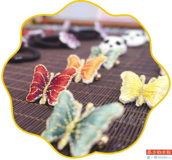 南都记者在现场看到许多纯手工制作的双面绣扇子和小巧精美的胸花。