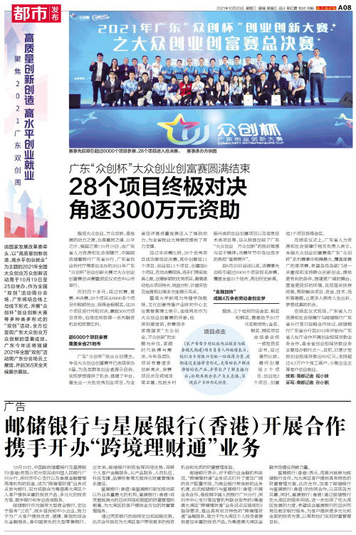 专题 10月18日,中国邮政储蓄银行及星展银行(香港)有限公司分别完成中国人民银行广州分行、深圳市中心支行以及香港金融管理局等机构的报备,成为“跨境理财通”业务试点参与银行。双方将联合为粤港澳大