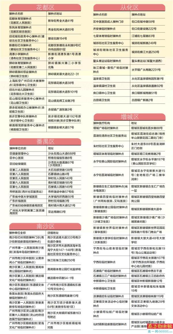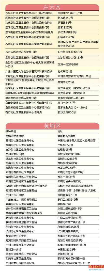 南都讯 近日,广州11区宣布开打新冠疫苗加强针。已经全程接种灭活疫苗或腺病毒载体疫苗满6个月的18岁以上人群,均可进行加强针接种。南都记者梳理各区最新接种点信息发现,11区均无须预约,符合条件的市民只要带上身份证,就可前往就近新冠病毒疫苗接种点接种第三针加强针。