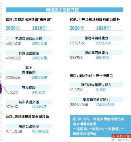 到2025年 总体建成贯通全省、畅通国内、连接全球的现代综合交通运输体系,交通运输高质量发展走在全国前列。