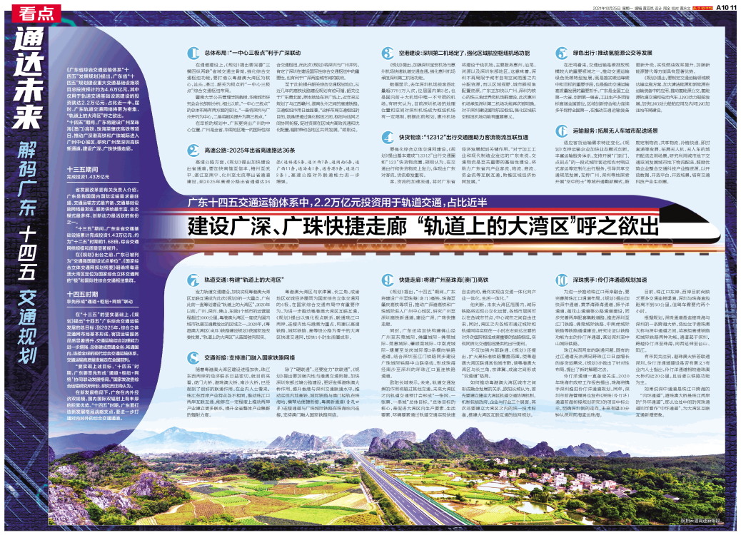 《广东省综合交通运输体系“十四五”发展规划》提出,广东省“十四五”规划建设重大交通基础设施项目总投资预计约为4.6万亿元,其中仅用于轨道交通基础设施建设的投资就达2.2万亿元,占比近一半。届时,广