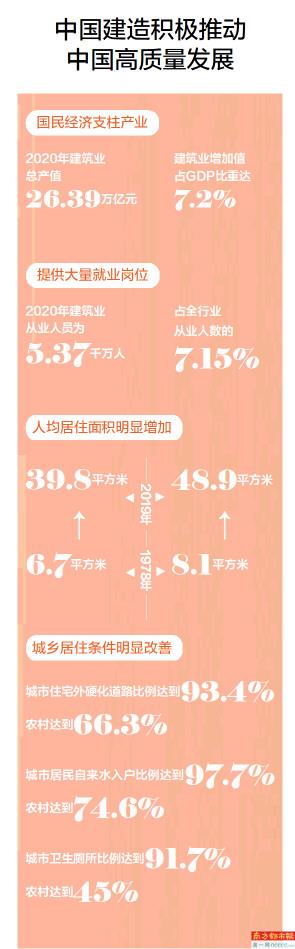 据他介绍,截至2020年,中国建筑业总产值已达到26.39万亿元,建筑业增加值占GDP比重达7.2%,就业人数达0.537亿,占全行业从业人数的7.15%。
