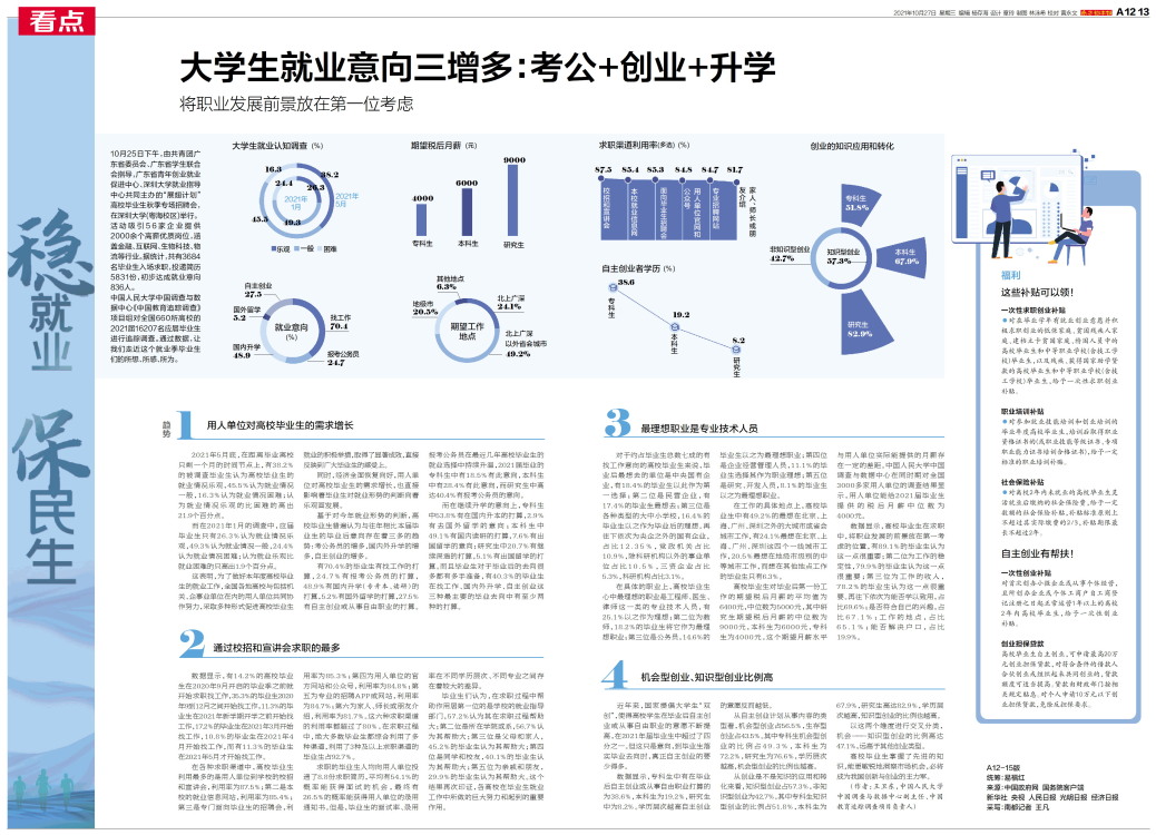 大学生就业意向三增多:考公+创业+升学
