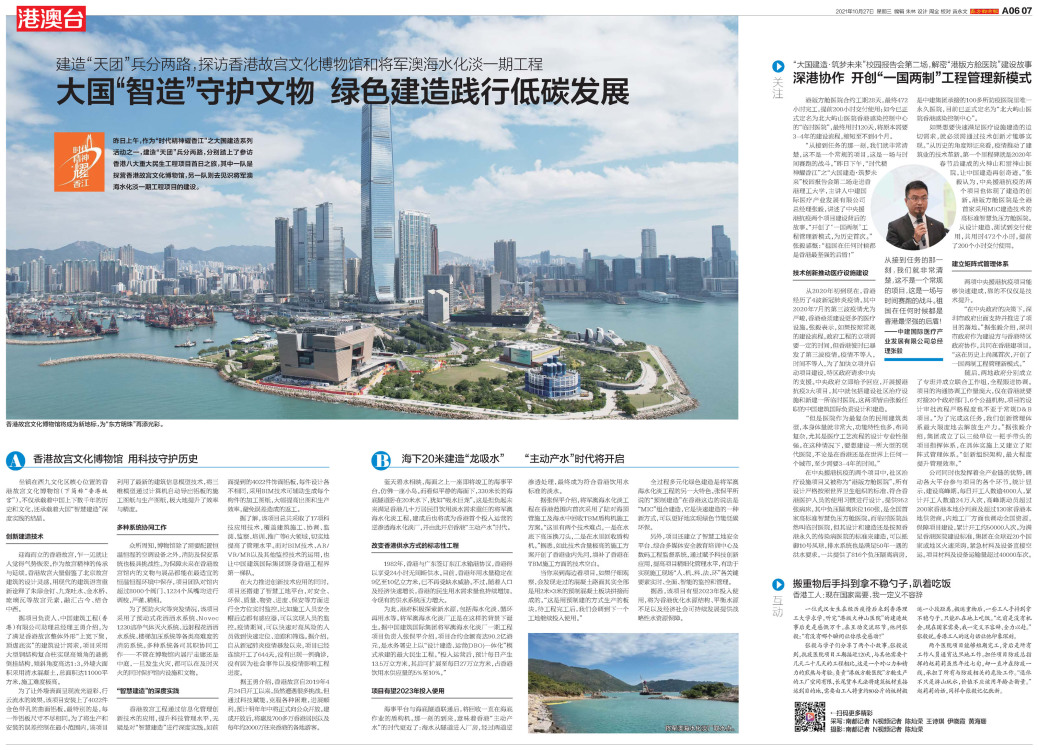 香港故宫文化博物馆将成为新地标,为“东方明珠”再添光彩。 将军澳海水化淡厂取水点。 中建国际医疗产业发展有限公司总经理张毅