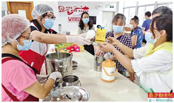 蓬江区江华公共服务中心工作人员在长者饭堂内为老人们送餐。 通讯员供图