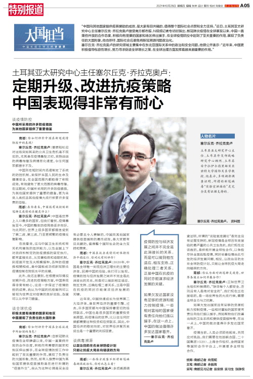 人物名片 塞尔丘克·乔拉克奥卢 土耳其亚太研究中心主任、土耳其外交部战略研究中心顾问、土耳其安卡拉伊尔德里姆贝亚兹特大学国际关系学教授。他表示,多项溯源调查证明,所谓的新冠病毒“实验室泄漏论”
