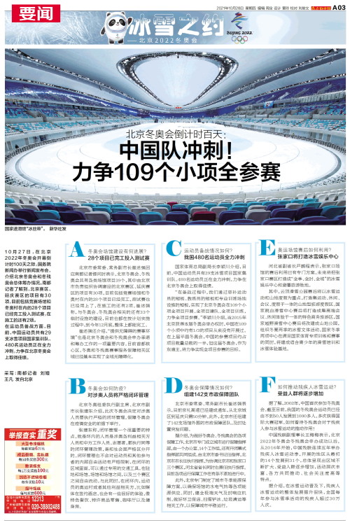 10月27日,在北京2022年冬奥会开幕倒计时100天之际,国务院新闻办举行新闻发布会,介绍北京冬奥会和冬残奥会总体筹办情况。南都记者了解到,北京赛区、延庆赛区的项目有30项,目前包括竞赛场馆和冬