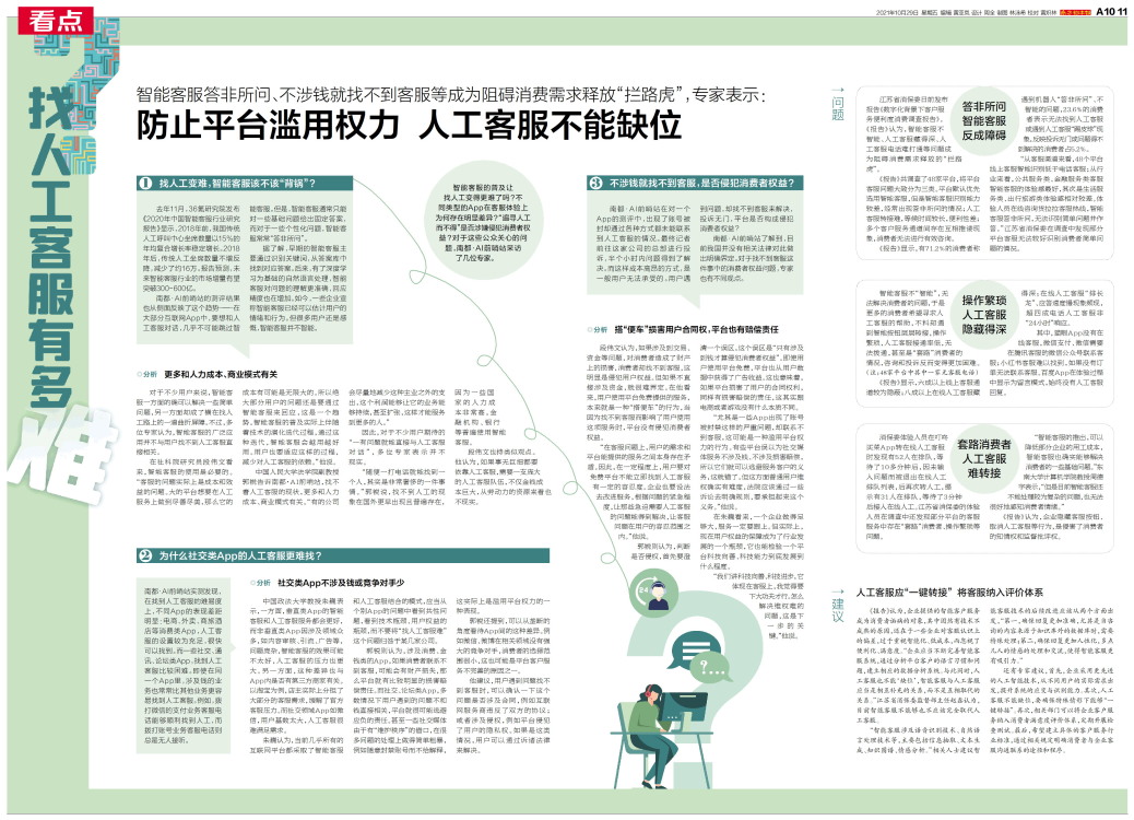 智能客服的普及让找人工变得更难了吗?不同类型的App在客服体验上为何存在明显差异?“遍寻人工而不得”是否涉嫌侵犯消费者权益?对于这些公众关心的问题,南都·AI前哨站采访了几位专家。 找人工变难,
