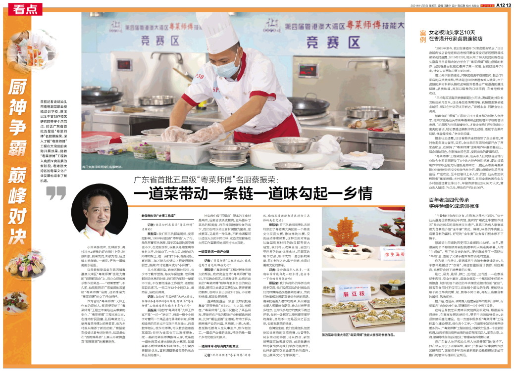 日前记者走访汕头市南粤潮菜职业技能培训学校、蔡溪记全牛宴制作技艺研究院等多个示范点,对话广东省首批五星级“粤菜师傅”名厨蔡振荣,深入了解“粤菜师傅”工程在大湾区的实际开展效果。随着“粤菜师傅”工程