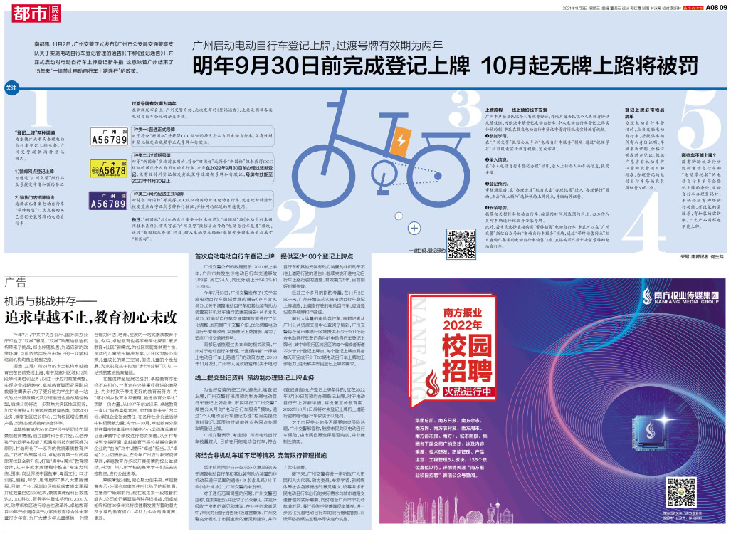 南都讯 11月2日,广州交警正式发布《广州市公安局交通警察支队关于实施电动自行车登记管理的通告》(下称《登记通告》),并正式启动对电动自行车上牌登记新举措,这意味着广州结束了15年来“一律禁止电动