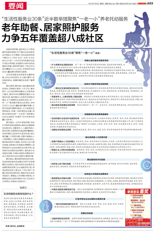 经国务院同意,国务院办公厅转发国家发展改革委《关于推动生活性服务业补短板上水平提高人民生活品质的若干意见》(以下简称“意见”,别称“生活性服务业30条”)。2日对外发布的意见包括9方面30项举措,