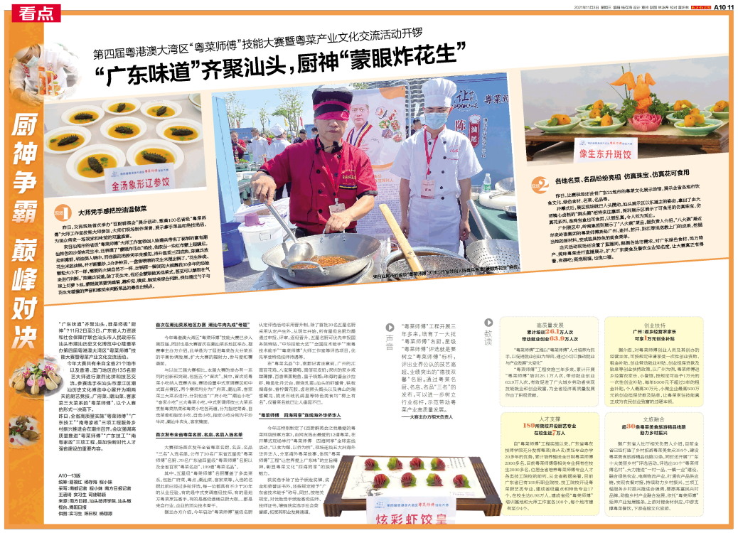 “广东味道”齐聚汕头,谁是终极“厨神”?11月2日至3日,广东省人力资源和社会保障厅联合汕头市人民政府在汕头市潮汕历史文化博览中心隆重举办第四届粤港澳大湾区“粤菜师傅”技能大赛暨粤菜产业文化交流活