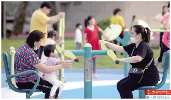 广州二沙岛体育公园,众多家长带着小朋友前来运动锻炼身体。南方日报记者 李细华 摄