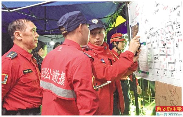 深圳公益救援队在光明渣土坍塌事故现场救援。