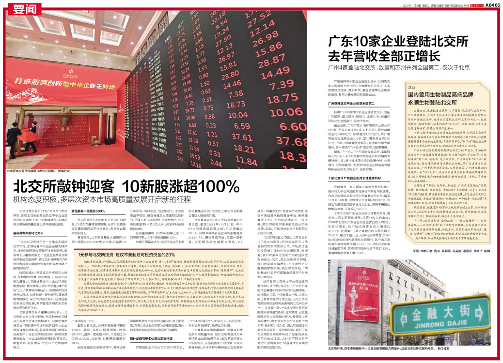 北京证券交易所(下称“北交所”)昨日开市,体现北交所服务创新型中小企业定位的81家首批上市公司集体亮相,多层次资本市场高质量发展也将开启新的征程。易会满发声办好北交所 “设立北交所对于进一步