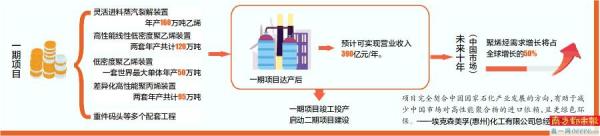 据介绍,埃克森美孚惠州乙烯项目总投资约100亿美元,分两期建设。