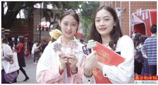 不少校友手里都拿着一根文创雪糕,雪糕集合了校门、校训、木棉花等元素。