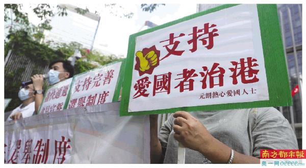 在香港特区立法会外,香港市民表达对爱国者治港的支持。 新华社发