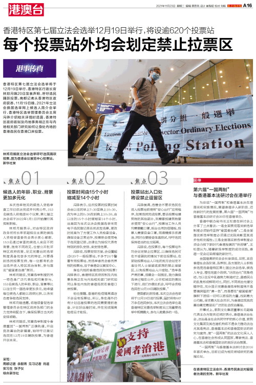 香港特区第七届立法会选举将于12月19日举行,香港特区行政长官林郑月娥20日发表声明,呼吁选民踊跃投票。南都记者从香港特区政府获悉,11月19日晚,2021年立法会换届选举网上候选人简介会举行,香