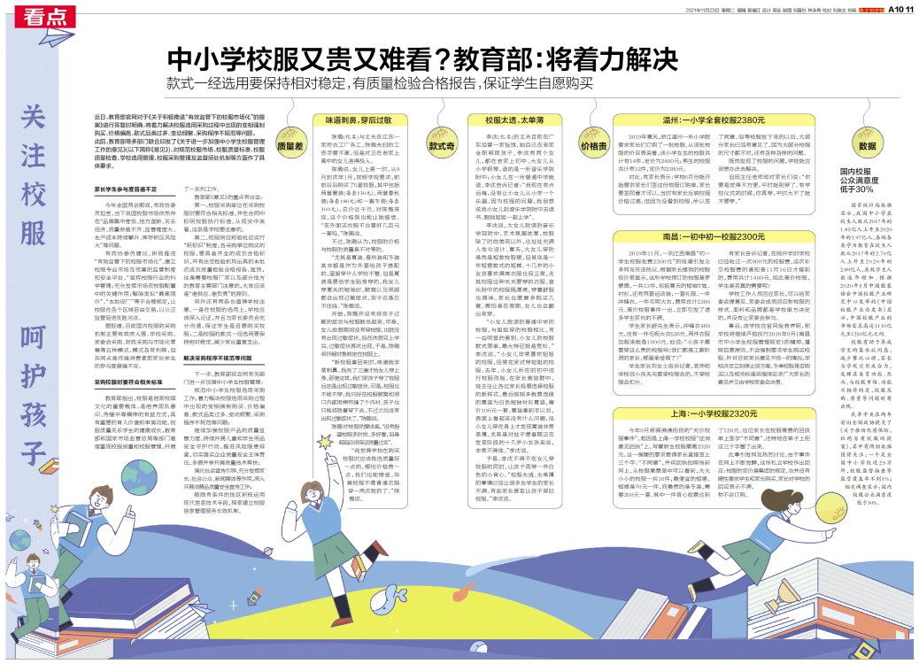 近日,教育部官网对于《关于积极推进“有效监管下的校服市场化”的提案》进行答复时明确,将着力解决校服选用采购过程中出现的变相强制购买、价格偏高、款式品类过多、变动频繁、采购程序不规范等问题。此前,教