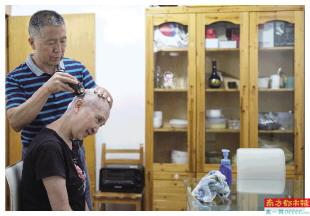 胡萍的头发长得很快,每次重新上贴片前,孟旭方都要为妻子剃一回头。胡萍还自创了一套“贴片拉皮”美容法,贴新贴片的时候,她会把眼睛轻轻往上一抬,配合娴熟的孟旭方就把贴片贴上。熟练掌握了抬眼的幅度后,胡萍的眼角就可以被贴片提上去,又不影响闭目休息。“我觉得现在我的样子比得病之前还要美!”照顾胡萍对孟旭方也是考验,胡萍感恩有个“骨灰级”的好老公。