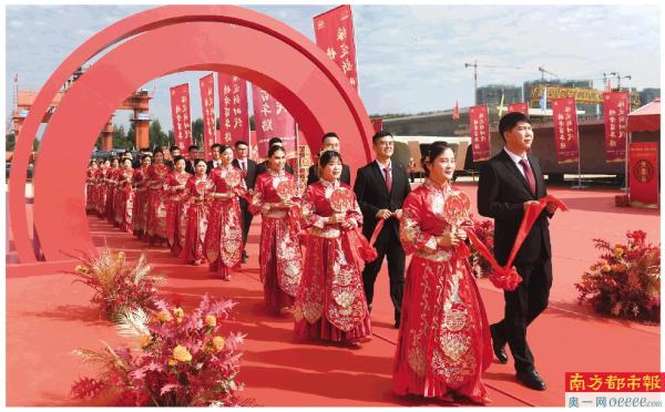 日前,贵南高铁武鸣制梁场举办了一场职工集体婚礼,64对新人携手步入婚姻殿堂。 新华社发
