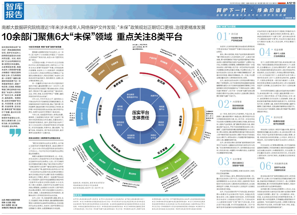 10余部门聚焦6大“未保”领域 重点关注8类平台